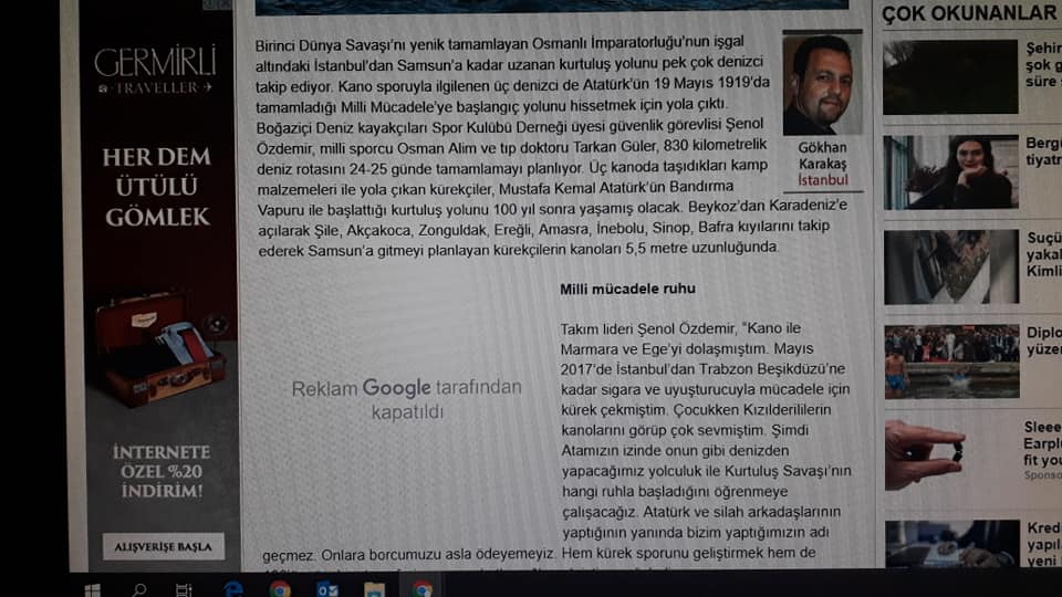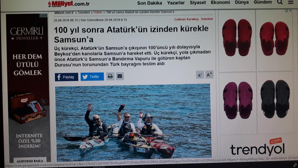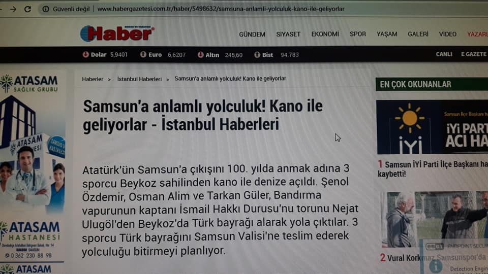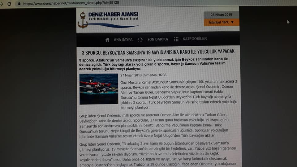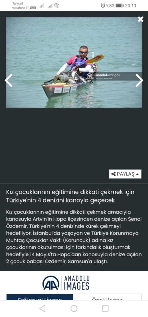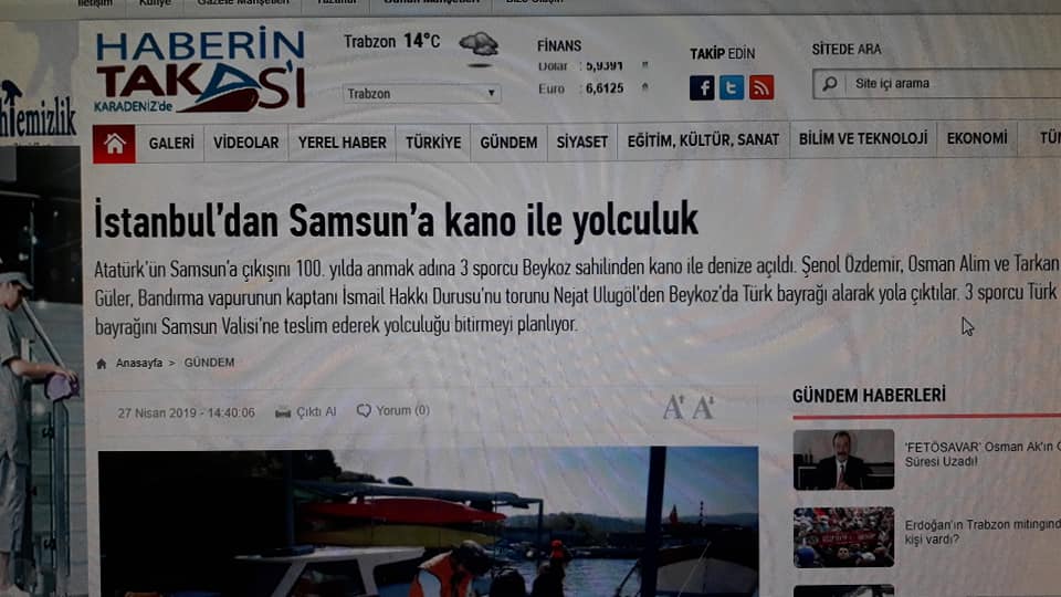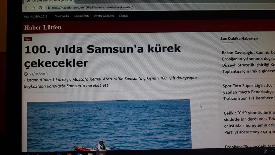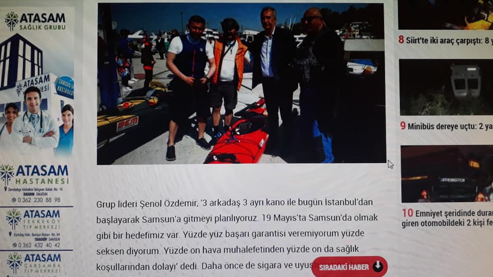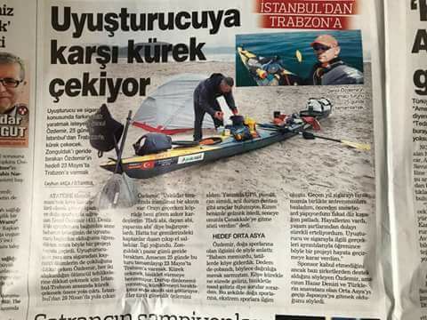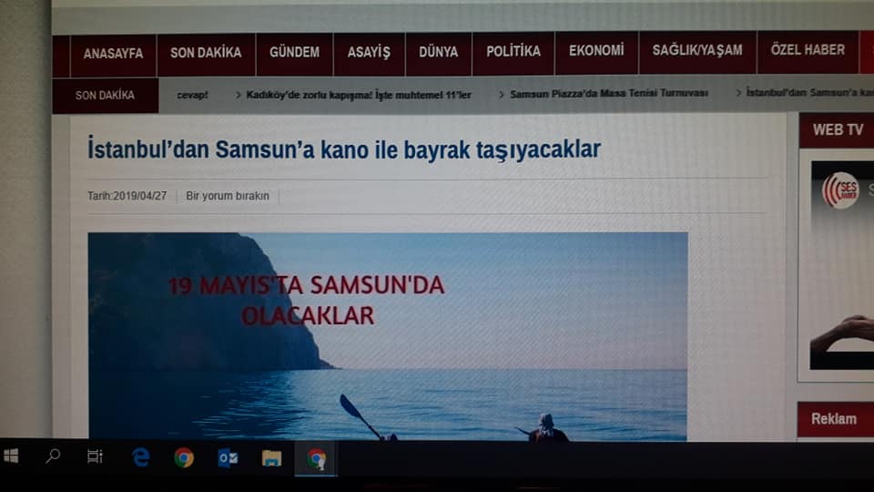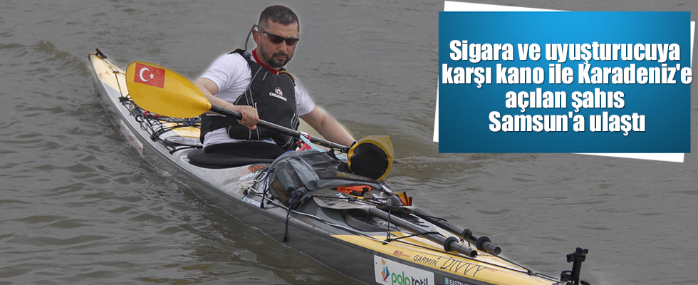 SİGARA VE UYUŞTURUCUYA KARŞI FARKINDALIK OLUŞTURMAK İÇİN KANO İLE İSTANBUL’DAN TRABZON’A GİTMEK İÇİN 29 NİSAN’DA YOLA ÇIKAN ŞAHIS SAMSUN’A ULAŞTI. (MUAMMER AY/SAMSUN-İHA)